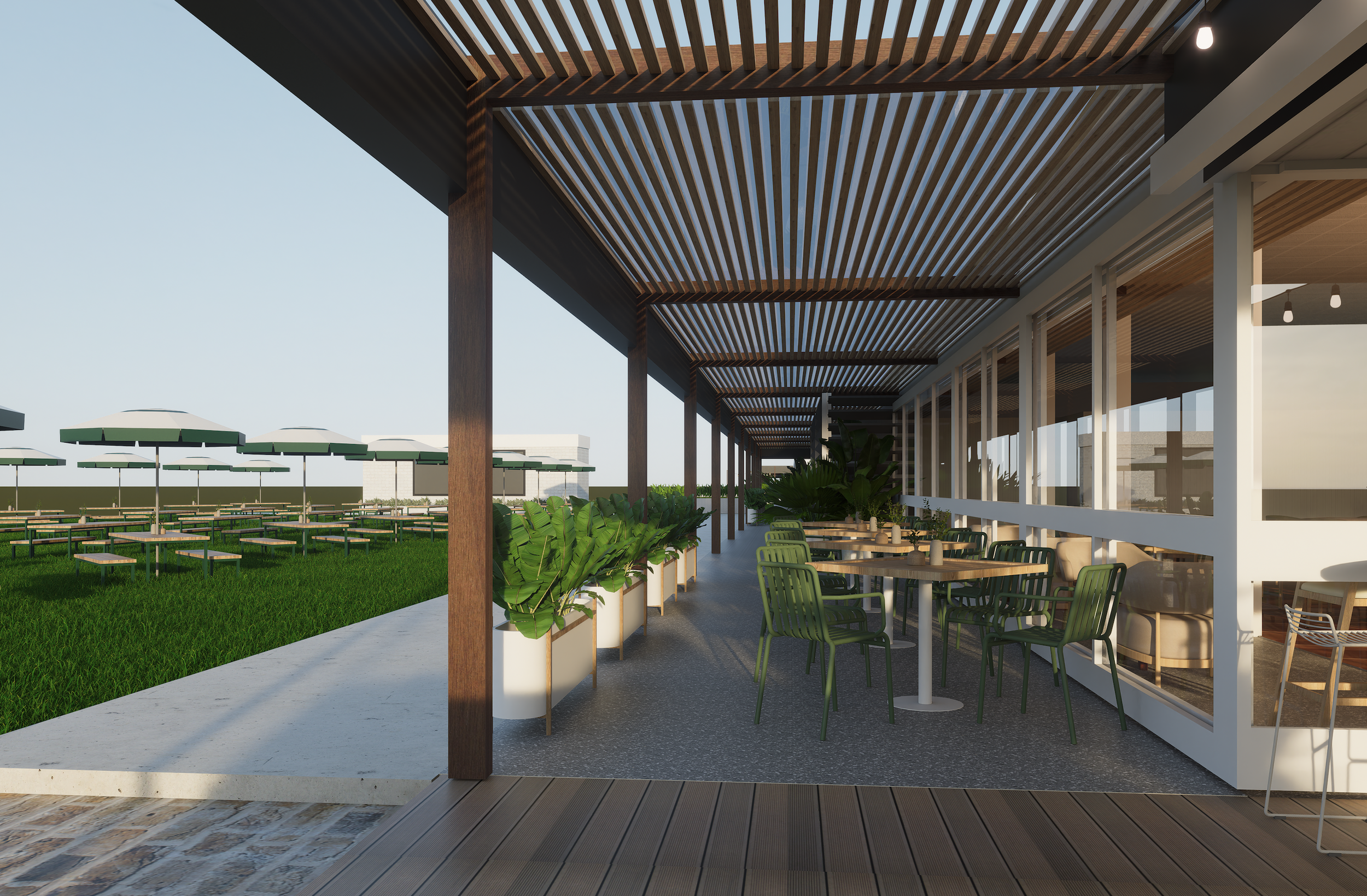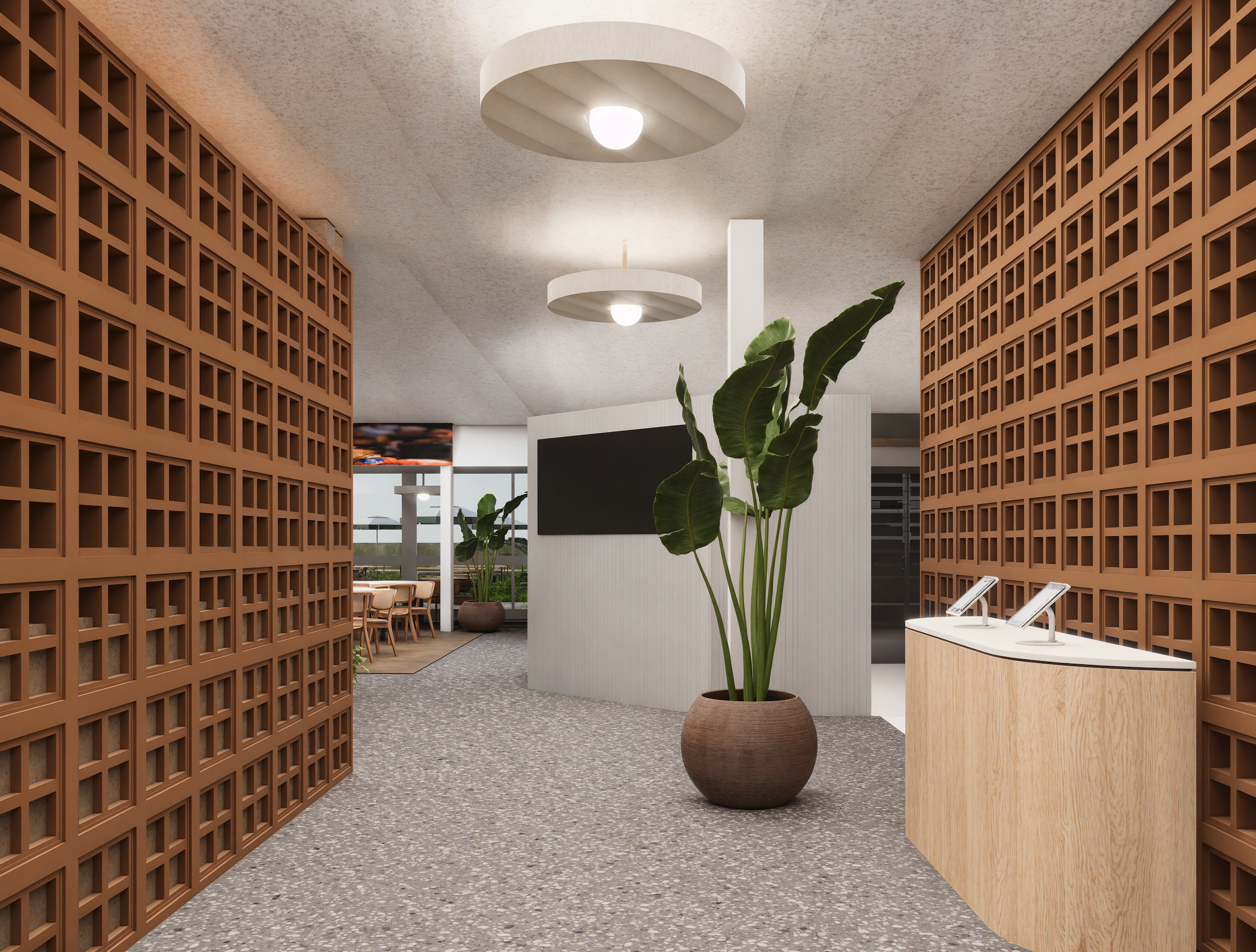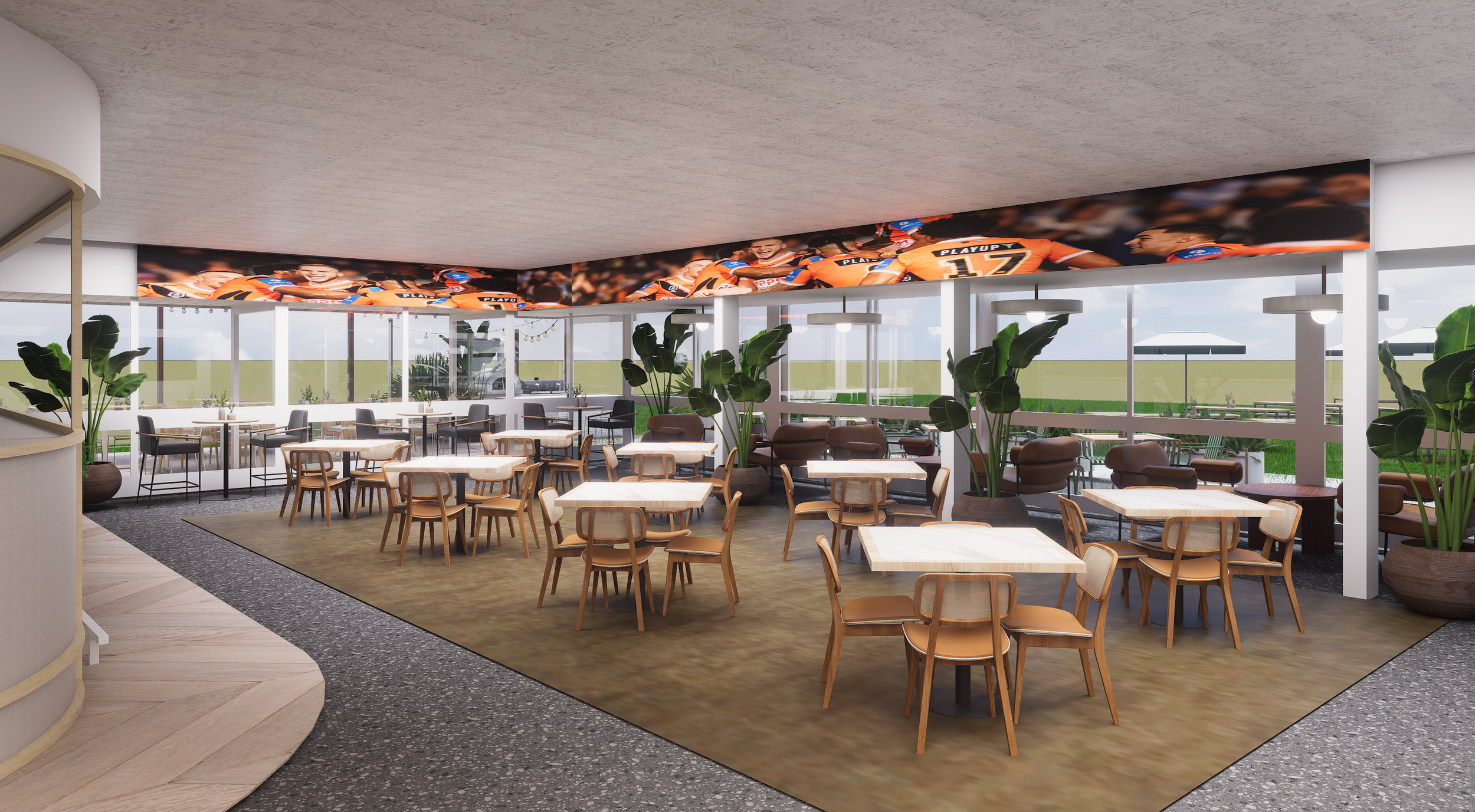 Our concept for a new club development, facade upgrade, foyer, outdoor dining, indoor dining.