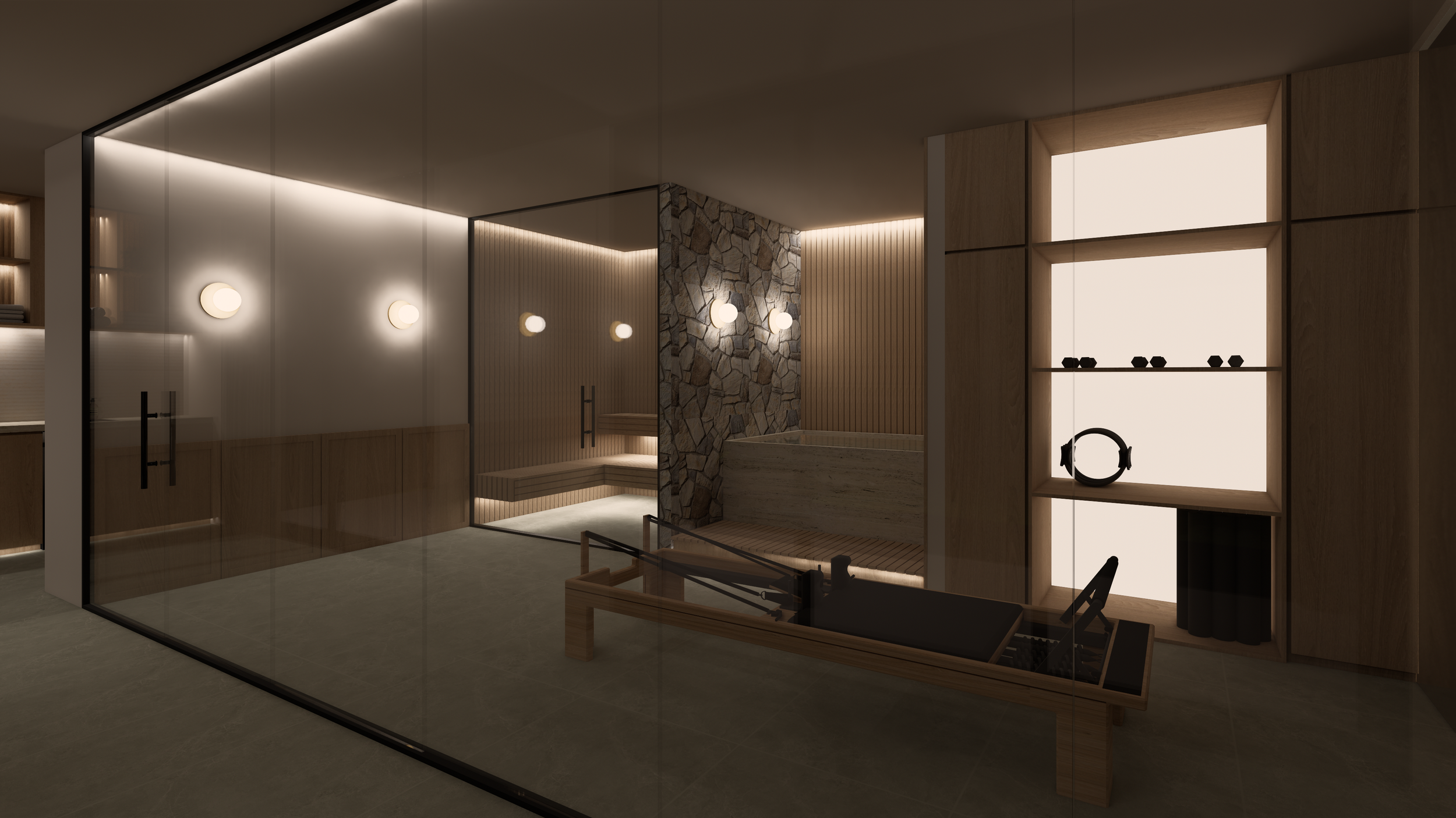 Wellness space- sauna, ice bath, pilates, refreshments bar