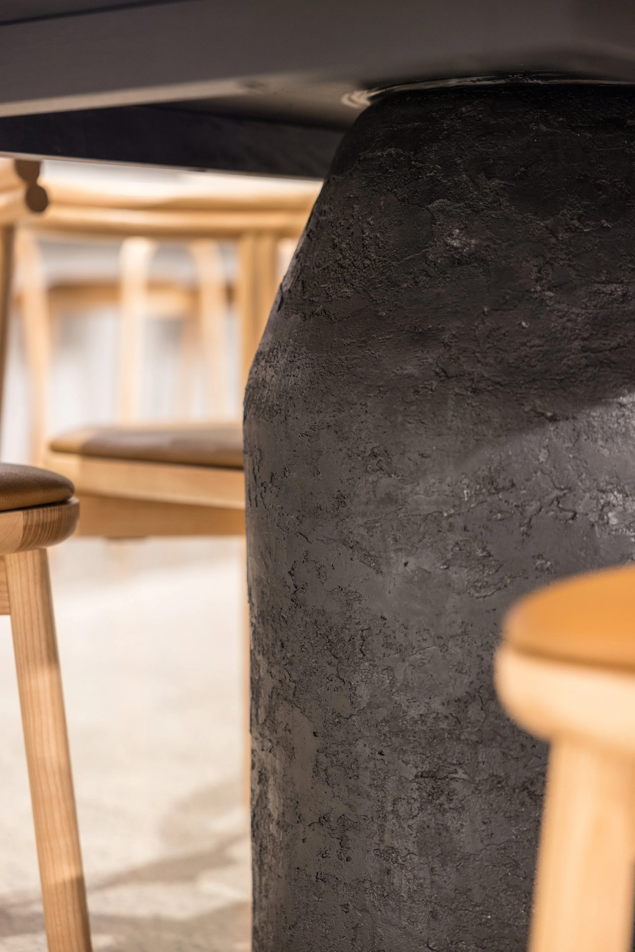 Custom table, 16 seater with ‘bullet’ style legs, allow the table to be removed for ultimate flexibility in the showroom.