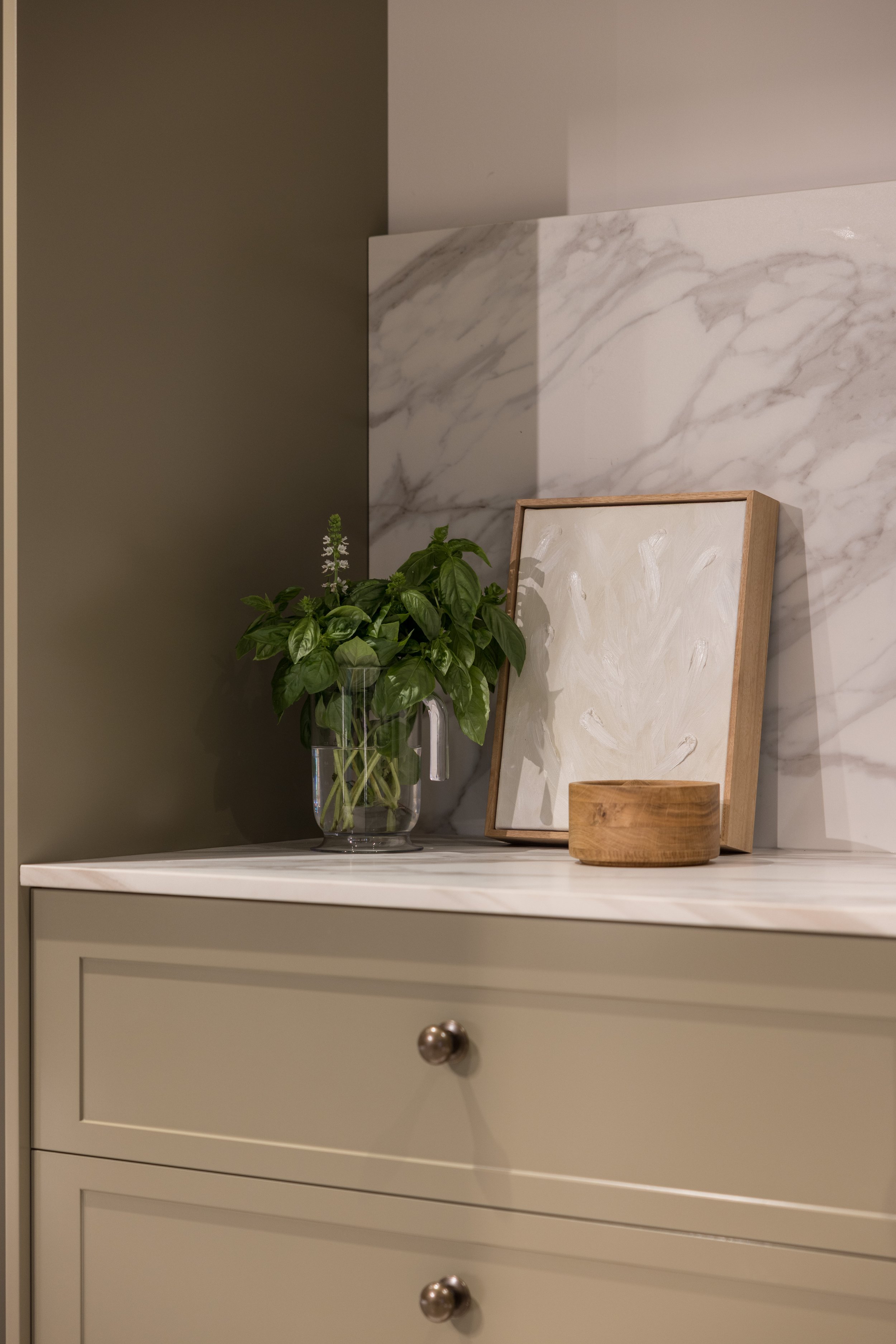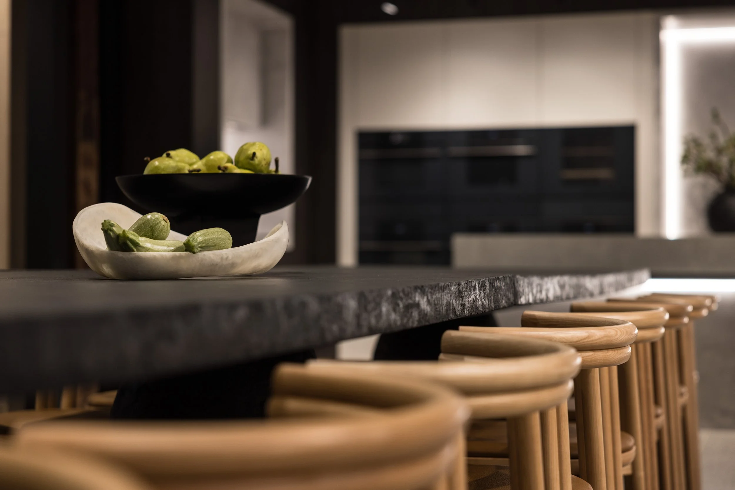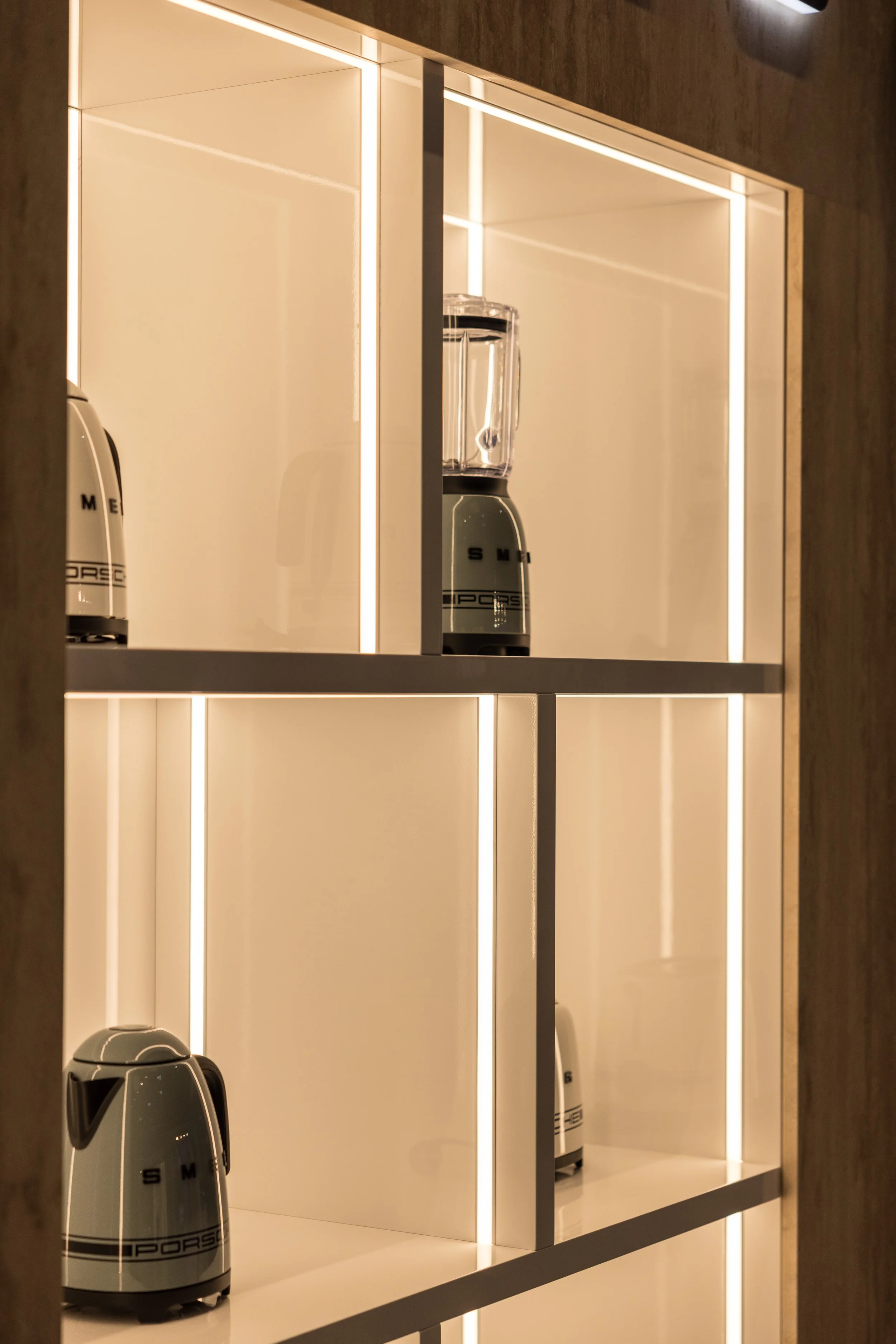 Finishes including stone, laminate, timber etc in drawers, to showcase against Smeg products.