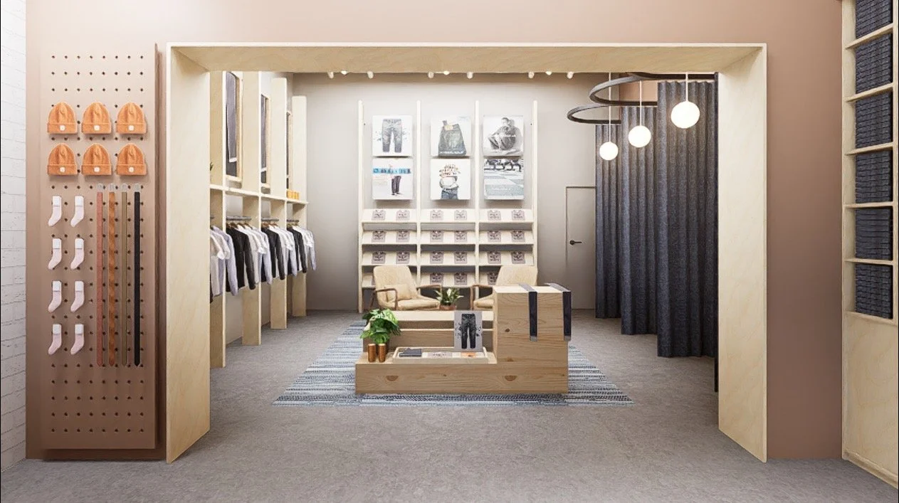 The brief for the Fitzroy store was to evolve the Nudie Jeans retail experience within a compact footprint, retaining existing elements while integrating new circular design innovations and increased storage flexibility.