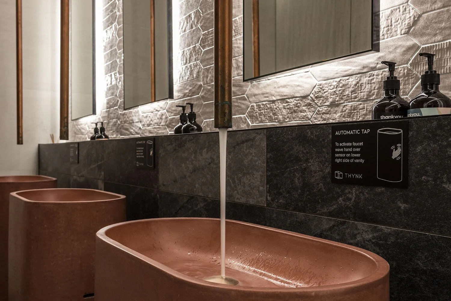 By creating an immersive environments that utilise the finishes on offer by Thynk, spaces such as the six fully functional bathrooms (over the three levels), kitchens, offices and selection rooms were created to showcase different styles (Scandinavian, rustic etc) in order to showcase products in context. Each environment was designed to be temporary in nature, with finishes changing out to showcase new materials periodically. Thus re-imaging the function of a traditional pop-up store experience.